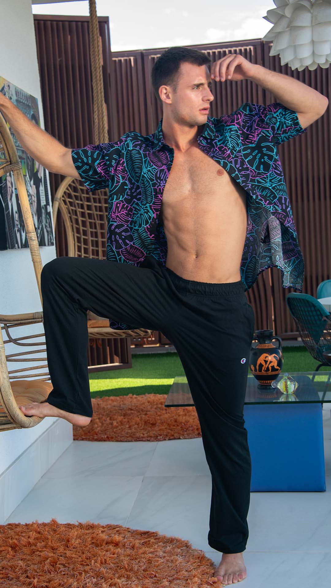 Fabian Arnold Wearing Hurley Shirt and Champion Sweatpants