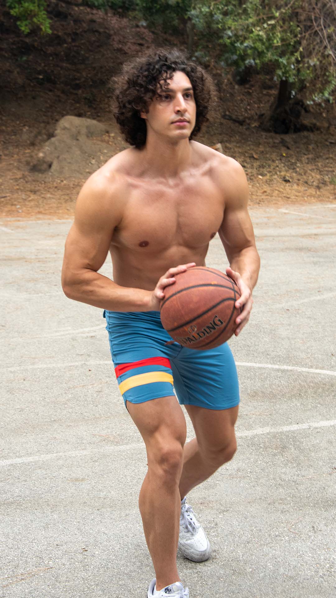 On a quiet basketball court in a tree-rich park, Charlie Santana, in his Hurley shorts, practices solo dribbling drills.