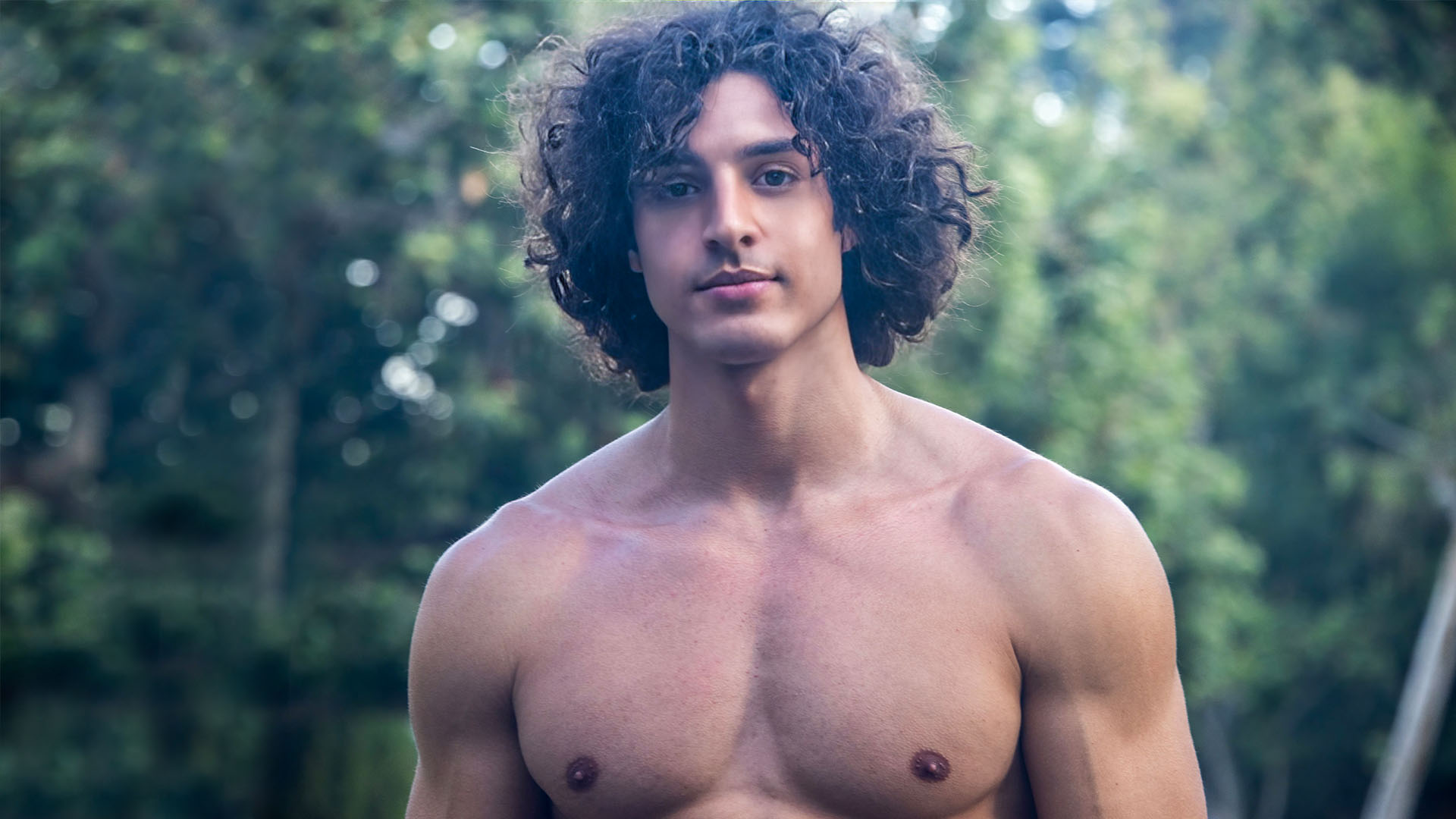 Charlie Santana, wearing Champion sweatpants, basks in the vibrant atmosphere of the park, immersed in a peaceful, leisurely day.