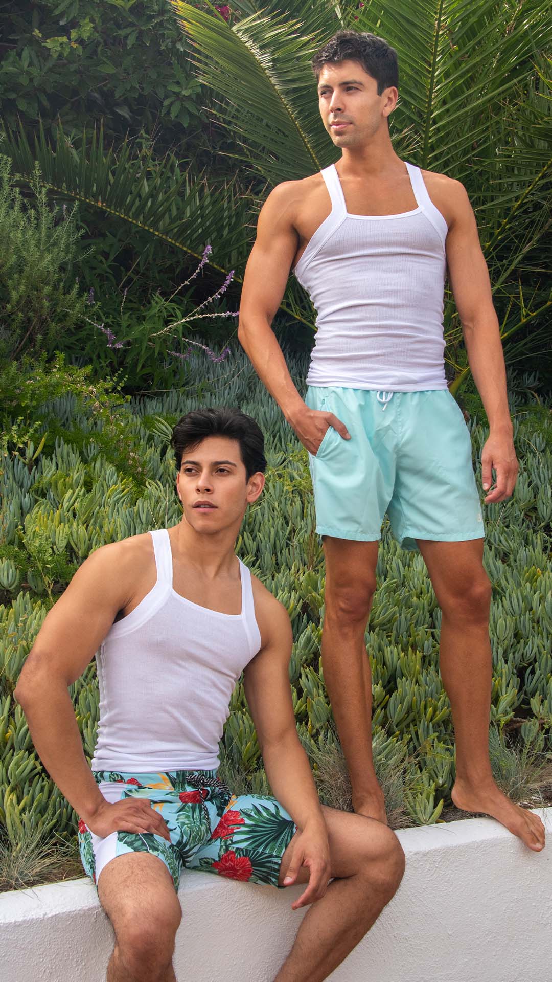 Anthony Garcia Wearing Hurley Board Shorts and Andrew Granillo Wearing Boss Board Shorts