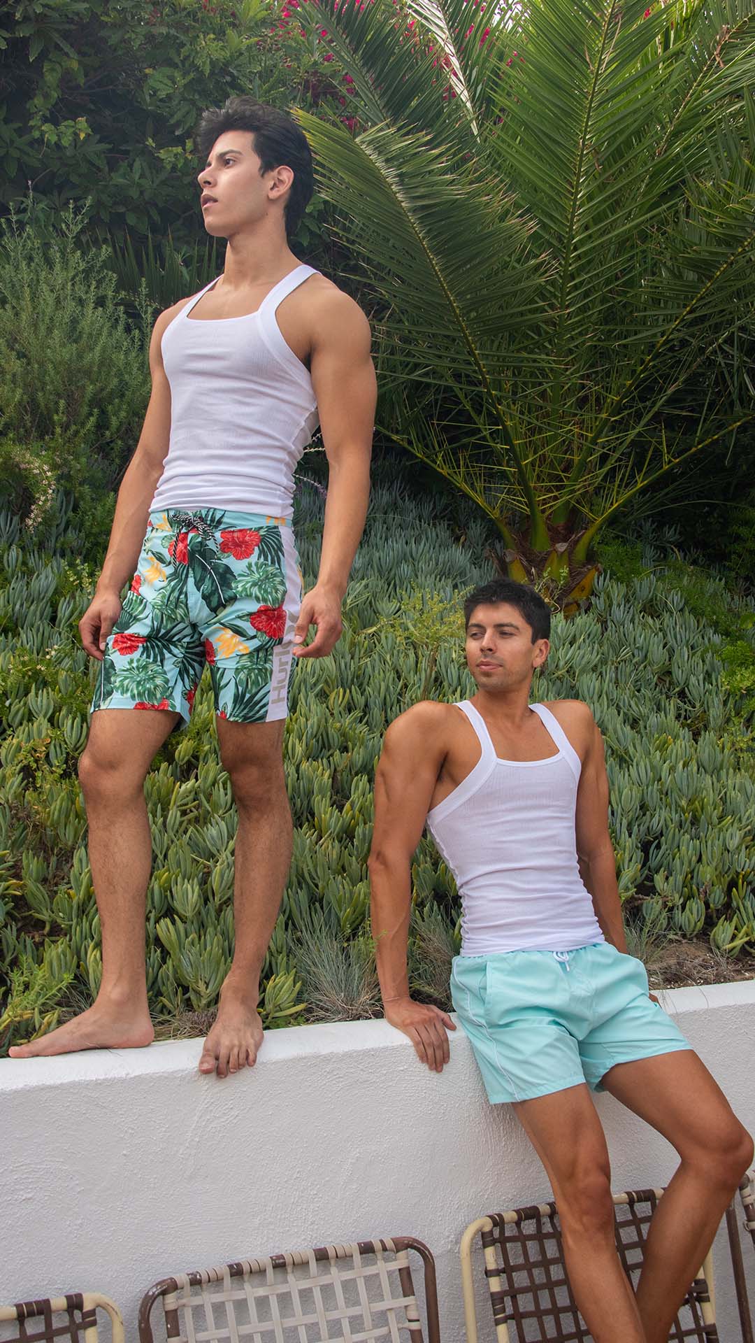 Anthony Garcia Wearing Hurley Board Shorts and Andrew Granillo Wearing Boss Board Shorts