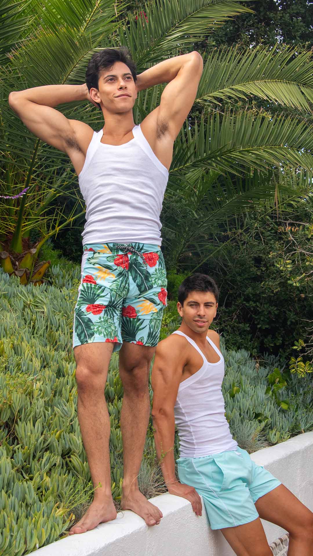 Anthony Garcia Wearing Hurley Board Shorts and Andrew Granillo Wearing Boss Board Shorts