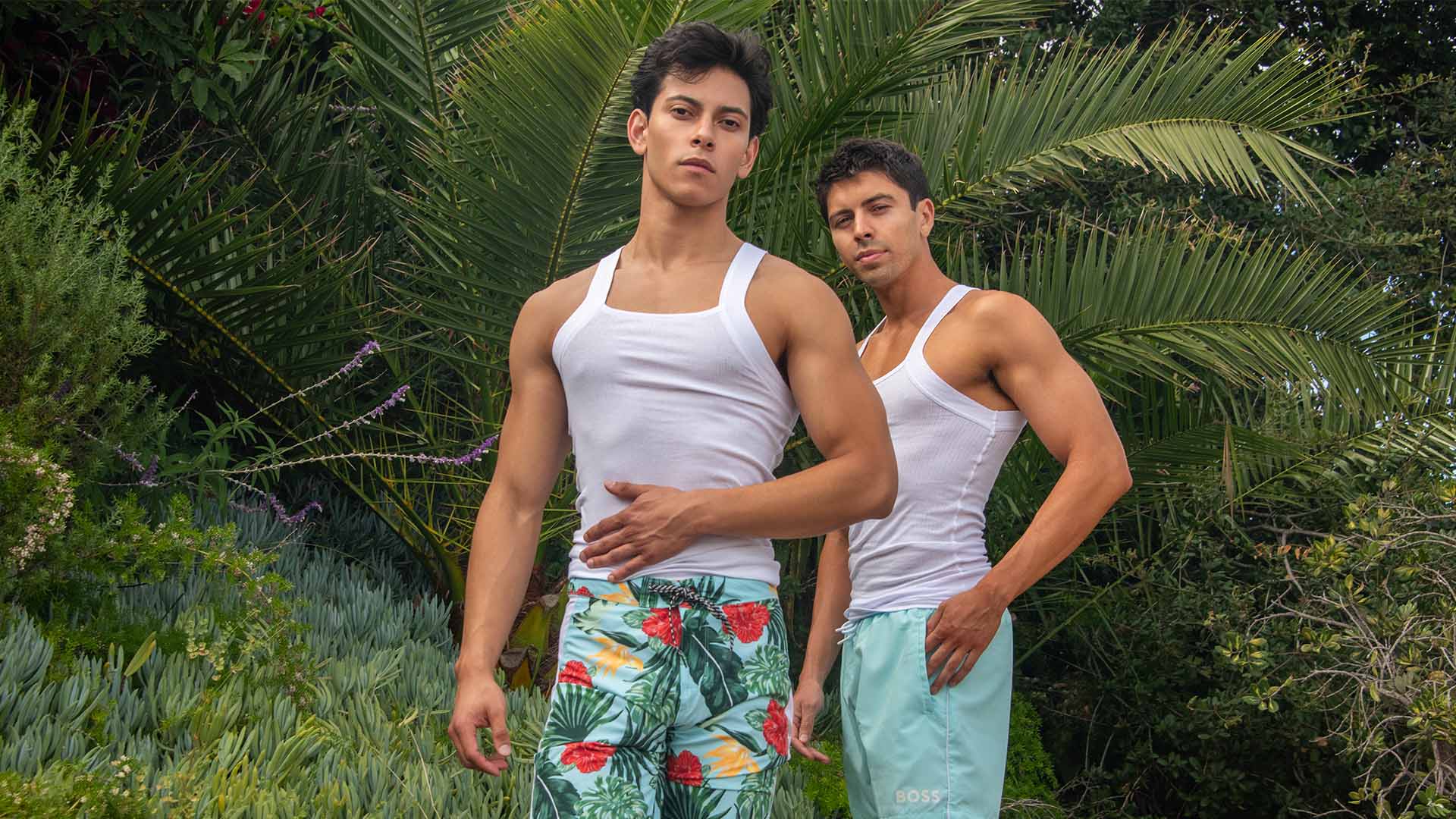In the lush greenery, Anthony’s Hurley shorts and Andrew’s Boss ensemble reflect their adventurous spirits and style preferences.