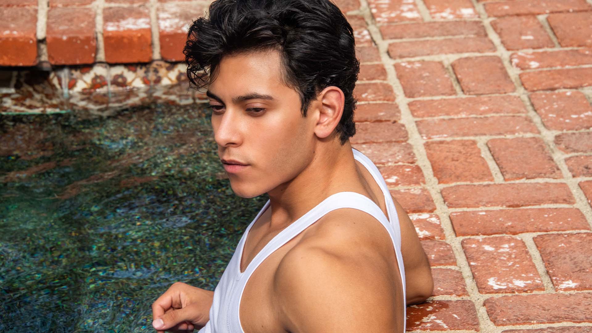 Anthony Garcia settles into the soothing embrace of the hot tub, the water complementing his Hurley board shorts, as he enjoys a moment of solitary relaxation.