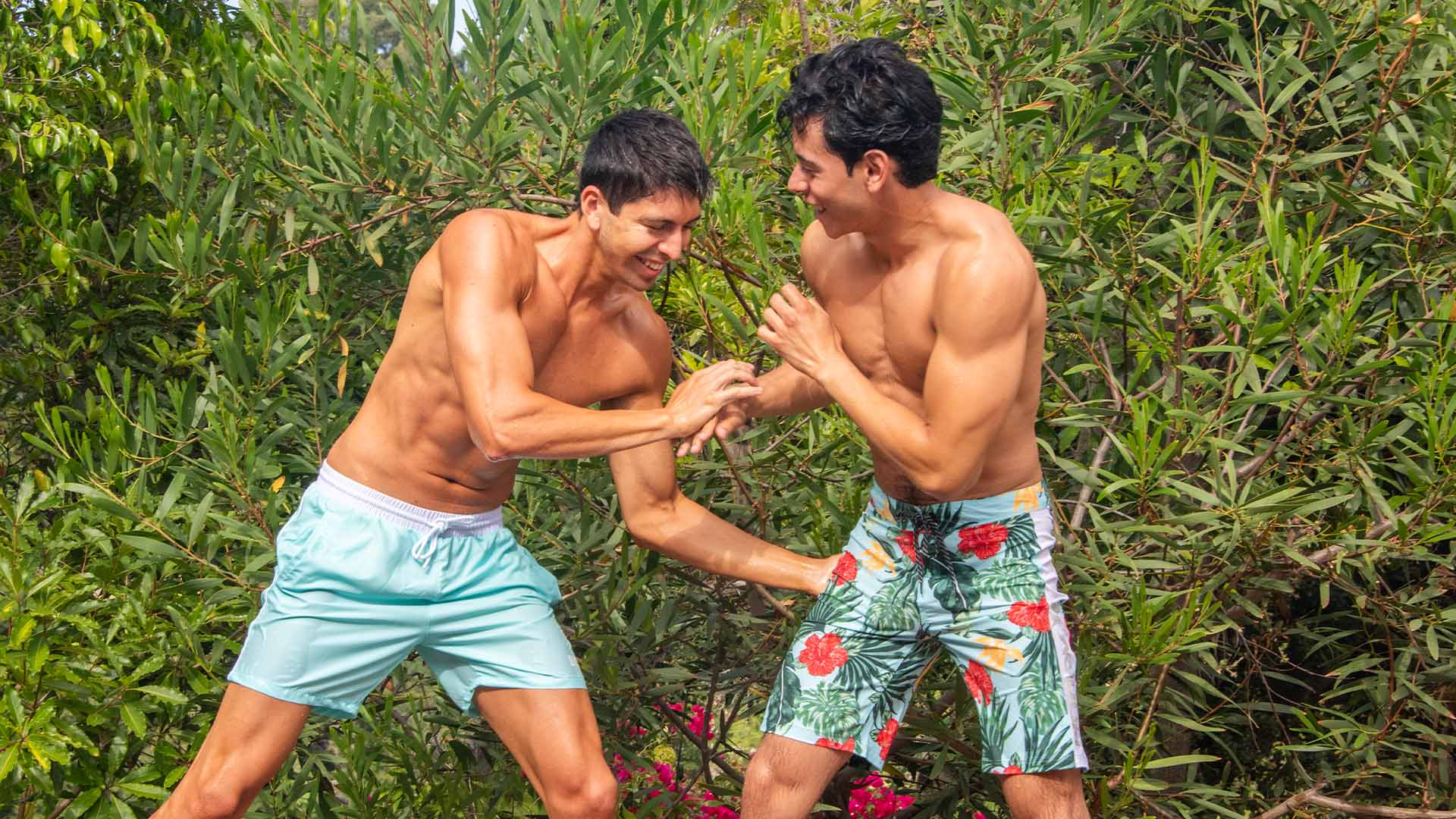 Anthony Garcia Wearing Hurley Board Shorts and Andrew Granillo Wearing Boss Shorts