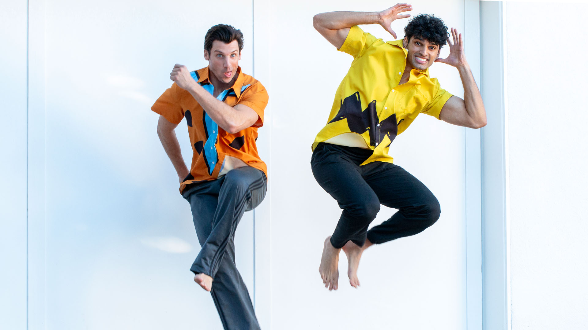 Jumping in mid-air, Tejas Mahabaleshwarkar and Gage Robinson showcase their playful side, with expressive poses that highlight their lively personalities.
